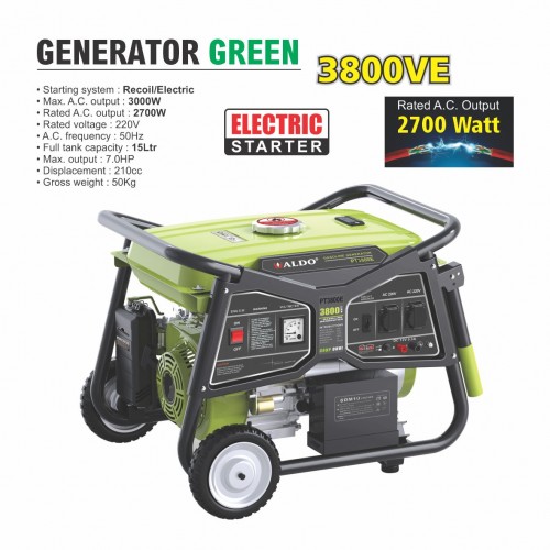 Starting system : Recoil/Electric Displacement : 210 cc Max. output : 7.0 HP A.C. frequency : 50 Hz Rated voltage : 220 V Max. A.C. output : 3000 W Rated A.C. output : 2700 W Full tank capacity : 15 Ltr Gross weight : 50 Kg
