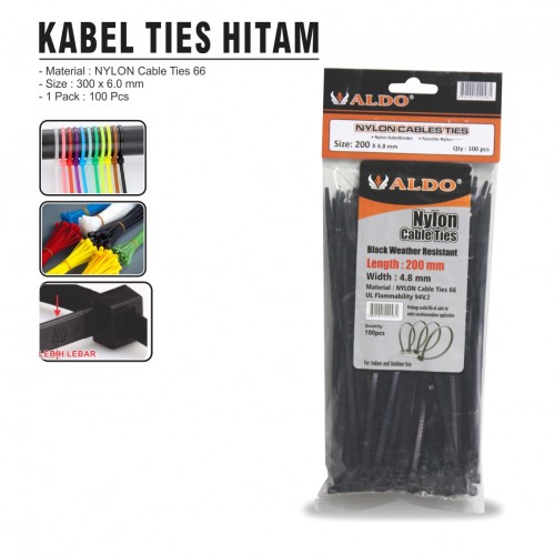 Material : Nylon-66 Warna Hitam Lebih lebar Panjang : 300 mm Lebar : 6.0 mm