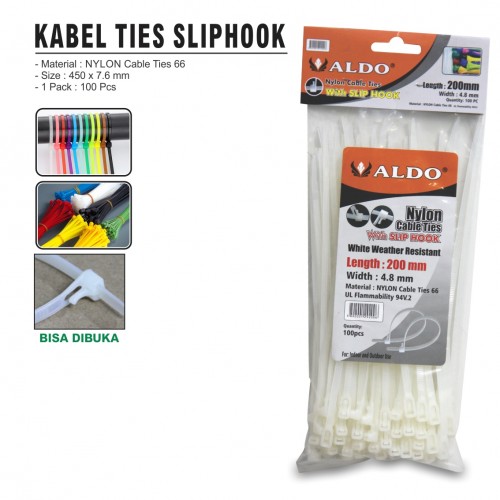 Material : Nylon-66 Warna Putih Panjang : 450 mm Lebar : 7.6 mm Bisa dibuka