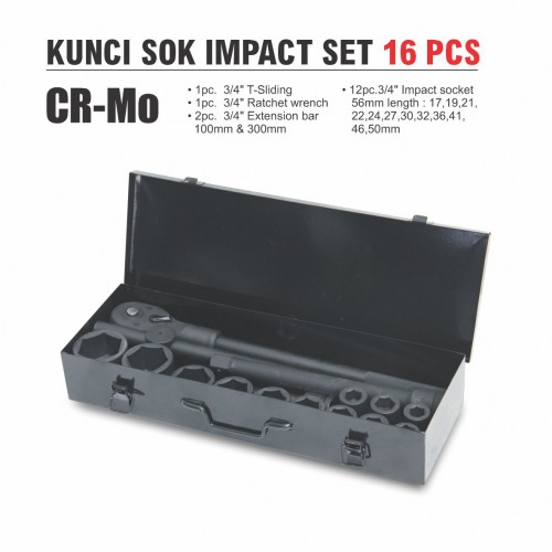 AL-KUNCI SOK SET IMPACT 16 PCS CR-MO (DR-3/4)