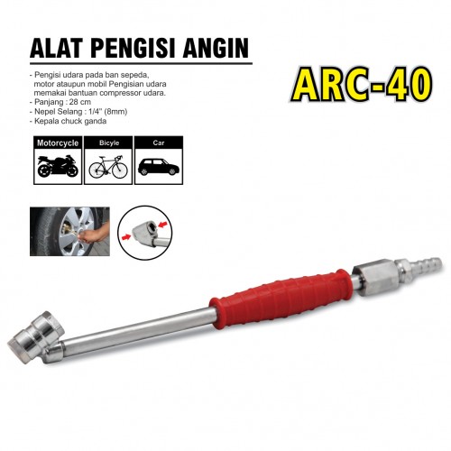Panjang : 28 cm Nepel Selang : 1/4 inch (8 mm) Kepala chuck ganda Quantity : 10 pcs / ktk