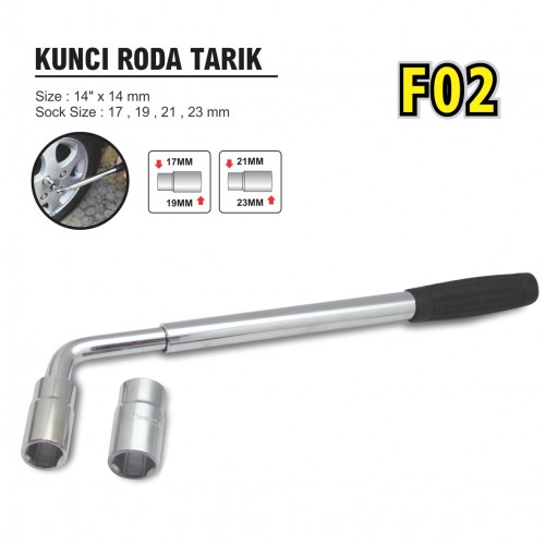 Kunci roda L flexible, digunakan untuk melepas dan mengganti mur roda pada kendaraan bermotor. Ukuran mata sock : 17, 19, 21, 23 mm