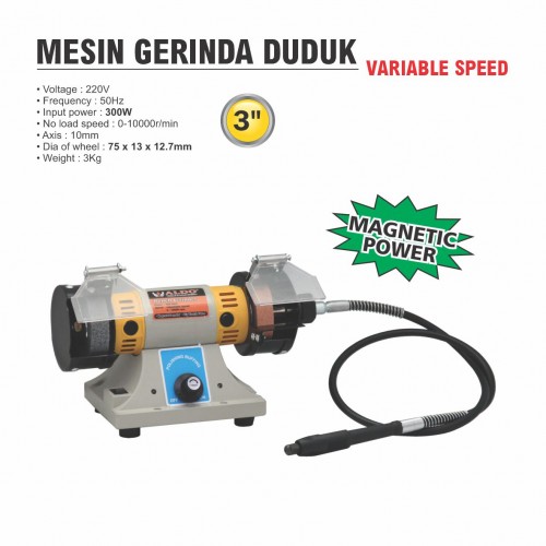 Voltage : 220 V Frequency : 50 Hz Input power : 300 W No load speed : 0 - 10000 r/min Dia. Of wheel : 75 x 13 x 12.7 mm