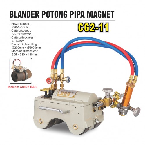 • Power source : 220V - 50Hz • Cutting speed : 50-750mm/min • Cutting thickness : 6 - 50mm • Dia. of circle cutting : Ø200mm ~ Ø2000mm • Machine dimension : 305 x 310 x 180mm