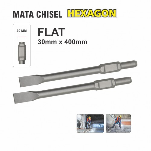Mata chisel tipe flat yang digunakan untuk mesin demolition hammer dengan ujung hexagon 30mm Panjang 400 mm