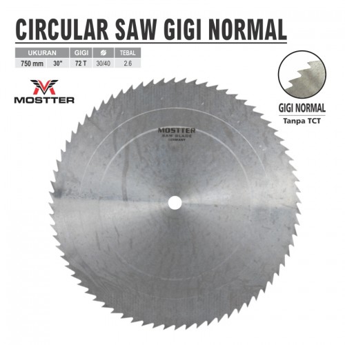 Untuk memotong kayu Gigi Normal tanpa TCT Gigi : 72 T Diameter : 30/40 Tebal : 2.6 Quantity : 1 pcs / ktk