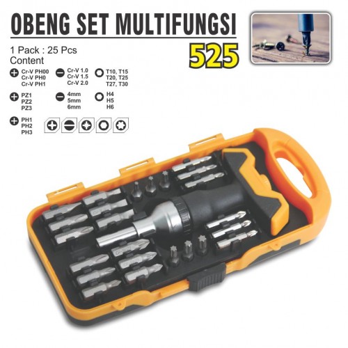 18 pc. 25mm x 6.35 bits 6 pc. Precision bits 1 pc. T handle screw