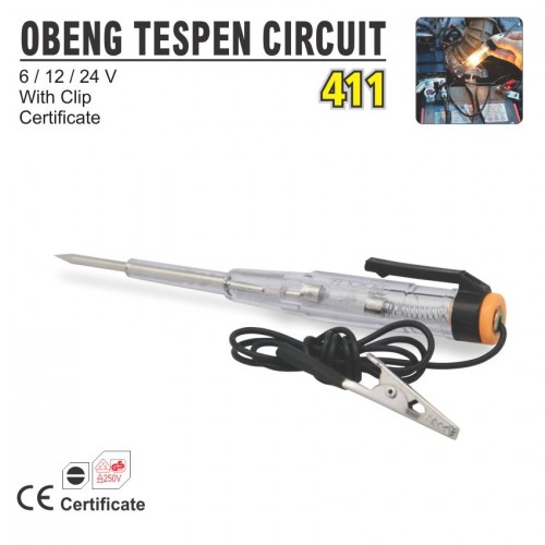 Obeng dengan batang tespen sebagai alat bantu cek arus listrik, jika ada arus listrik maka otomatis gagang akan menyala. Automotive Circuit Tester 6/12/24V
