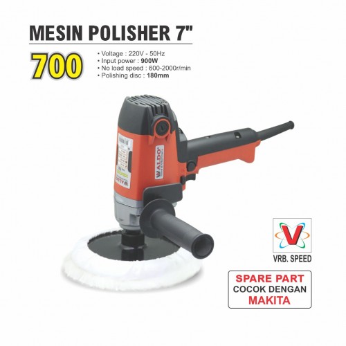 Voltage : 220 V Frequency : 50 Hz Input power : 900 W No load speed : 600 - 2000 r/min Polishing disc : 180 mm Variable speed