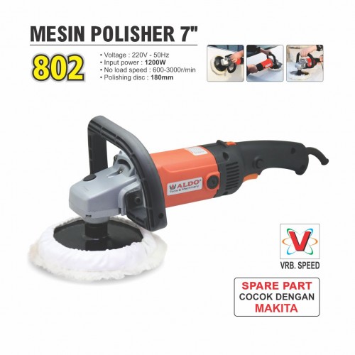 Voltage : 220 V Frequency : 50 Hz Input power : 1200 W No load speed : 600-3000 r/min Polishing disc : 180 mm Variable speed