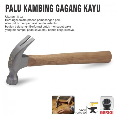 Palu kambing terdiri dari 2 bagian, bagian muka yang rata untuk memukul paku, sedangkan cakarnya untuk mencabut paku. Dilengkapi dengan handle kayu
