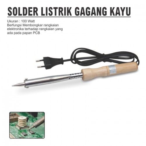 Solder listrik yang dilengkapi dengan handle kayu sehingga lebih nyaman untuk digenggam Voltage : 220 - 240 V / 50 Hz