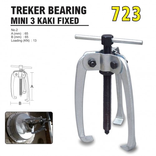 No.2 A (mm) : 65 B (mm) : 65 Loading (KN) : 13 Alat ini memiliki fungsi sama dengan treker biasanya, yaitu berfungsi untuk melepaskan atau membuka bearing dan gear. Alat treker ini sangat disarankan untuk para pemilik usaha otomotif, industri, dan teknik lainnya. Alat yang begitu sederhana ini cukup membantu dan juga lebih aman untuk melakukan pelepasan bearing dan gear tanpa merusak komponen lainny
