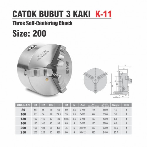 Seri K-11 Self centring Max. input torque : 250 Nm Max. speed : 3000 r/min weight : 15.5 kg Quantity : 1 pcs / dos