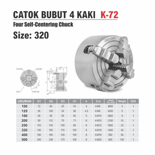 Seri K-72 Independent chuck Net WT : 40 kg Max. speed : 1400 r/min Quantity : 1 pcs / dos