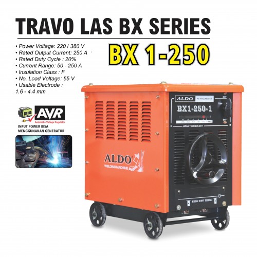 • Power Voltage: 220 / 380 V • Rated Output Current: 250 A • Rated Duty Cycle : 20% • Current Range: 50 - 250 A • Insulation Class : F • No. Load Voltage: 55 V • Usable Electrode : 1.6 - 4.4 mm