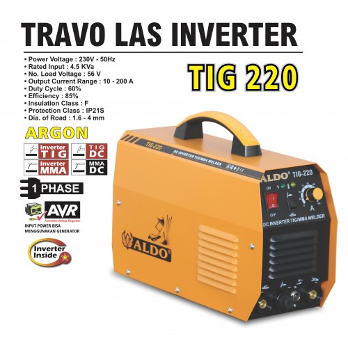 Power voltage : 230V - 50Hz Rated input : 4.5KVa No. load voltage : 56V Output current range : 10 - 200A Duty cycle : 60% Efficiency : 85% Insulation class : F Protection class : IP21S Dia. off road : 1.6 - 4mm