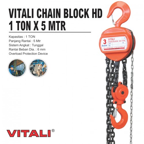 Chain Block digunakan untuk memudahkan mengangkat barang yang berat. Kapasitas : 1 ton Rantai : 5 mtr Sistem angkat : tunggal Rantai beban diameter : 6 mm Berat : 15 kg Quantity : 1 pcs / dos
