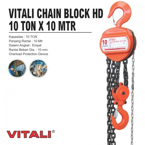 Chain Block digunakan untuk memudahkan mengangkat barang yang berat. Kapasitas : 10 ton Rantai : 10 mtr Sistem angkat : empat Rantai beban diameter : 10 mm Berat : 150 kg Quantity : 1 pcs / dos