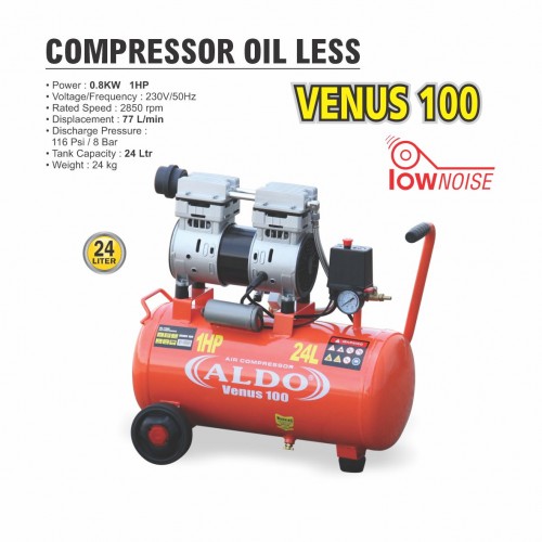 Power : 0.8KW 1HP Voltage/Frequency : 230V/50Hz Rated Speed : 2850 rpm Displacement : 77 L/min Discharge Pressure : 116 Psi / 8 Bar Tank Capacity : 24 Liter Quantity : 1 pcs / dos