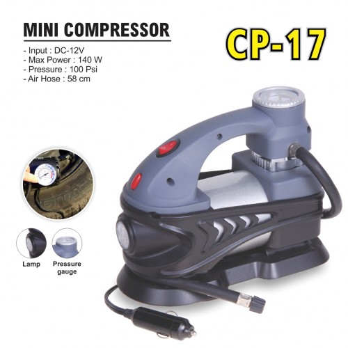 Input : DC 12 V Max. Power : 140 W Displacement : 30 L/min Pressure : 100 psi Air hose : 58 cm Untuk Mobil Sedan & SUV Quantity : 1 pcs / ktk