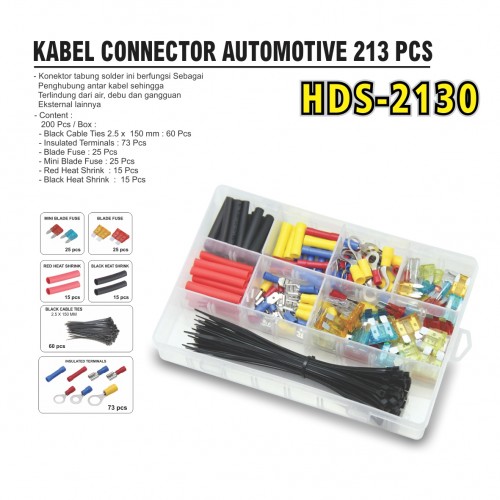- Konektor tabung solder ini berfungsi Sebagai Penghubung antar kabel sehingga Terlindung dari air, debu dan gangguan Eksternal lainnya - Content : 200 Pcs / Box : - Black Cable Ties 2.5 x 150 mm : 60 Pcs - Insulated Terminals : 73 Pcs - Blade Fuse : 25 Pcs - Mini Blade Fuse : 25 Pcs - Red Heat Shrink : 15 Pcs - Black Heat Shrink : 15 Pcs