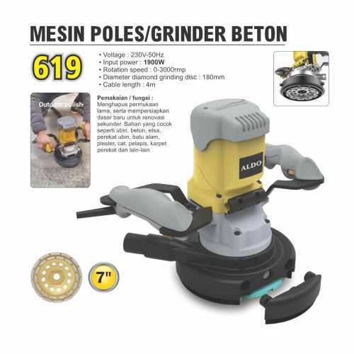 Volatge : 230V - 50Hz input power : 1900W Rotation speed : 0-3000rpm Dia diamond grinding dis : 180mm Cable lenght : 4mtr Fungsi / Pemakaian : menghapus permukaan lama, serta mempersiapkan dasar baru untuk renovasi sekunder. Bahan yang cocok seperti ubin, beton, etsa, perekat ubin, batu alam, plester, cat, pelapis,, karpet perekat dan lain-lain