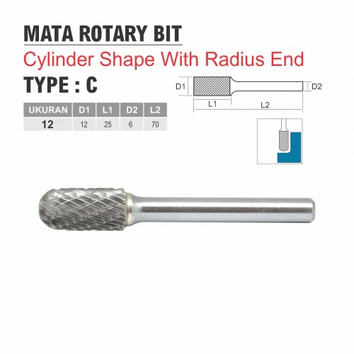 3. AL-ROTARY BIT (C) CYLINDER RADIUS END 6*12 MM