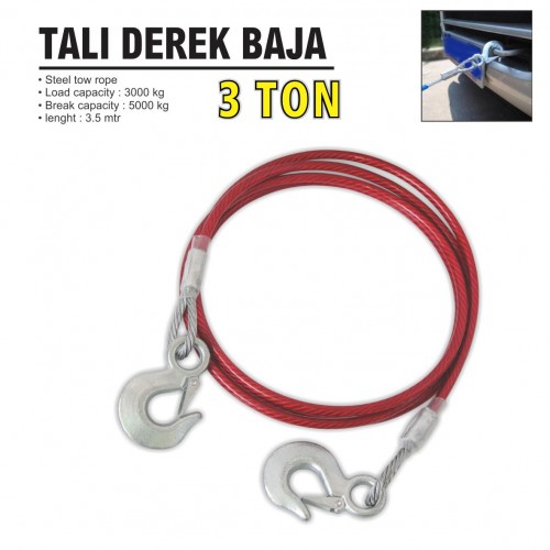 • Steel tow rope • Load capacity : 3000 kg • Break capacity : 5000 kg • lenght : 3.5 mtr