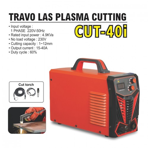 Spesification : • Input voltage : 1 PHASE 220V-50Hz • Rated input power : 4.9KVa • No load voltage : 230V • Cutting capacity : 1~12mm • Output current : 15-40A • Duty cycle : 60%