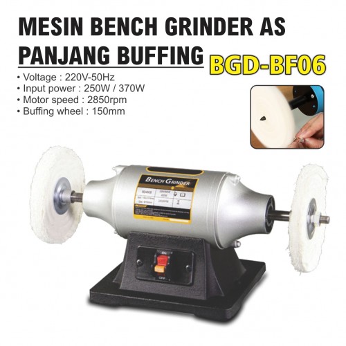 • Voltage : 220V-50Hz • Input power : 250W / 370W • Motor speed : 2850rpm • Buffing wheel : 150mm