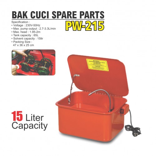 • Voltage : 230V-50Hz • Max. pump output : 2.7-3.3L/min • Max. head : 1.95-2m • Tank capacity : 65L • Solvent capacity : 15ltr