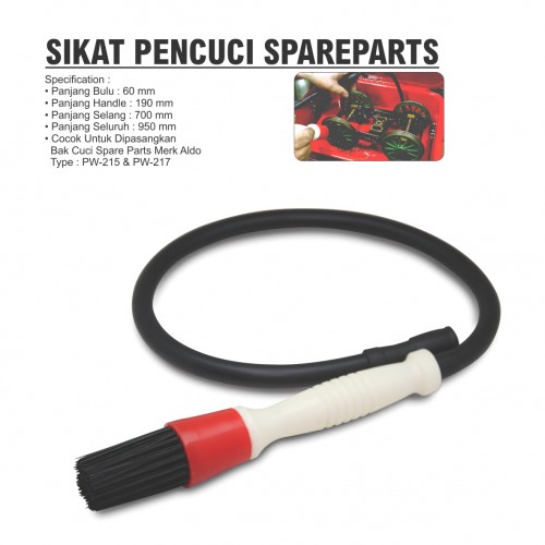 Specification : • Panjang Bulu : 60 mm • Panjang Handle : 190 mm • Panjang Selang : 700 mm • Panjang Seluruh : 950 mm • Cocok Untuk Dipasangkan Bak Cuci Spare Parts Merk Aldo Type : PW-215 & PW-217