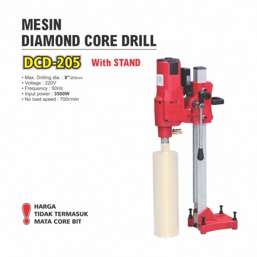 Max. drilling diameter : 205 mm Voltage : 220V Frequency : 50 - 60Hz Input power : 3500W No load speed : 700 r/min Weight : 20 kg