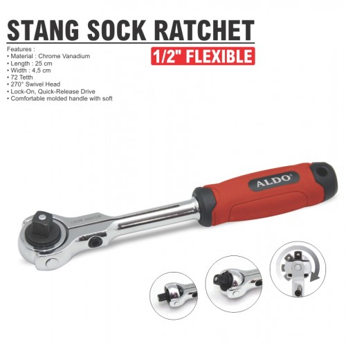 Features : • Material : Chrome Vanadium • Length : 25 cm| • Width : 4,5 cml • 72 Tetth • 270* Swivel Head • Comfortable moided handle with soft.