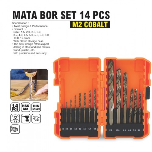 Specification : • Twist Design & Performance • Content : • Size : 1.5, 2.0, 2.5, 3.0, 3.2, 4.0, 4.5, 5.0, 5.5, 6.0, 8.0, 10.0, 12.0mm With plastic storage case • The twist design offers expert drilling in steel and iron metals, wood, plastic, etc. with precision and accuracy.