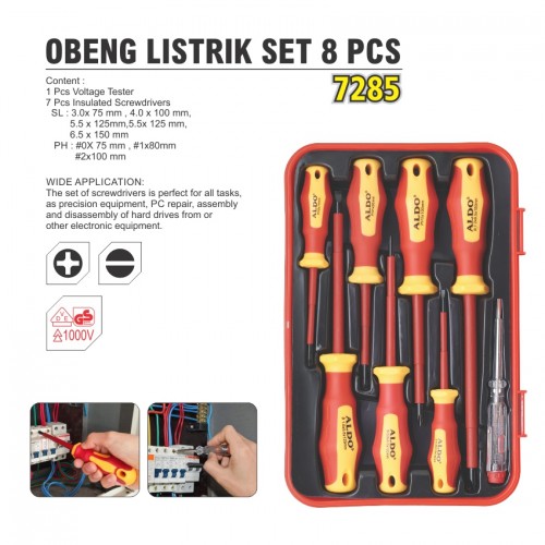 Content : 1 Pcs Voltage Tester 7 Pcs Insulated Screwdrivers SL : 3.0x 75 mm , 4.0 x 100 mm, 5.5 x 125mm,5.5x 125 mm, 6.5 x 150 mm PH : #0X 75 mm , #1x80mm #2x100 mm WIDE APPLICATION: The set of screwdrivers is perfect for all tasks, as precision equipment, PC repair, assembly and disassembly of hard drives from or other electronic equipment.