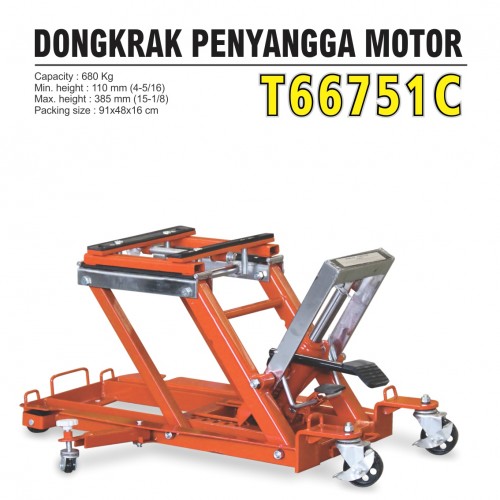 Capacity : 680 kg Min Height : 110 mm (4-5/16) Max Height : 385 mm (15-1/8) Netto weight : 44 kg Gross weight : 48 kg Packing Size : 91 x 48 x 16 cm Quantity : 1 pcs / dos