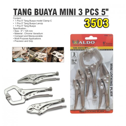 Content : • 1 Pcs 5" Tang Buaya model Clamp-C? • 1 Pcs 5" Tang Buaya Lancip • 1 Pcs 5" Tang Buaya Specification : • Size : 5" / 125 mm • Material : Chrome Vanadium • Compact and Maneuverable • Multi-Purpose Applications • Precision and Grip
