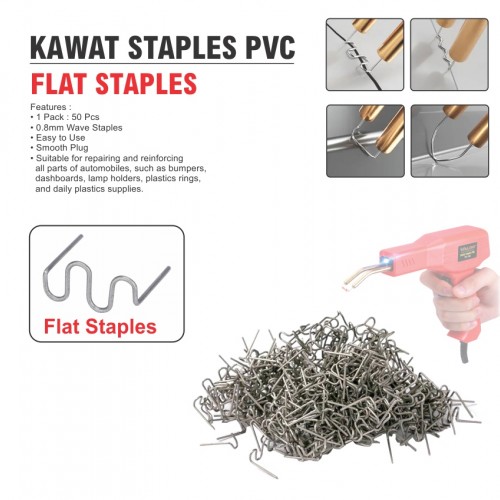 Features : • 1 Pack : 50 Pcs • 0.8mm Wave Staples • Easy to Use • Smooth Plug • Suitable for repairing and reinforcing all parts of automobiles, such as bumpers, dashboards, lamp holders, plastics rings, and daily plastics supplies.