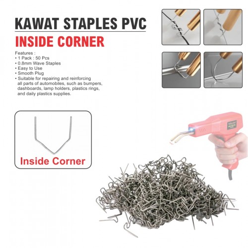 Features : • 1 Pack : 50 Pcs • 0.8mm Wave Staples • Easy to Use • Smooth Plug • Suitable for repairing and reinforcing all parts of automobiles, such as bumpers, dashboards, lamp holders, plastics rings, and daily plastics supplies.