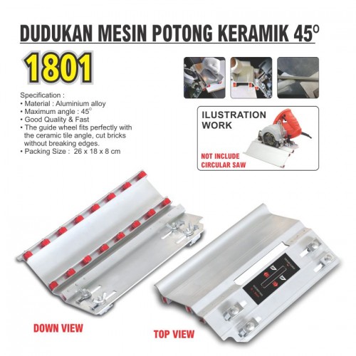 Specification : • Material : Aluminium alloy • Maximum angle : 45O • Good Quality & Fast • The guide wheel fits perfectly with the ceramic tile angle, cut bricks without breaking edges. • Packing Size : 26 x 18 x 8 cm