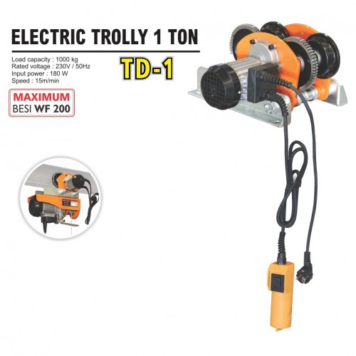 Load capacity : 1000 kg Rated voltage : 230V / 50Hz Input power : 180 W Speed : 15m/min Maximum Besi WF 200 Quantity : 1 pcs / dos
