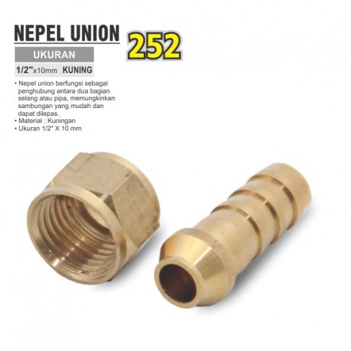 Nepel union berfungsi sebagai penghubung antara dua bagian selang atau pipa, memungkinkan sambungan yang mudah dan dapat dilepas. Material : Kuningan