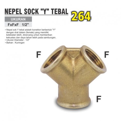 Nepel sok Y tebal adalah konektor berbentuk "Y" dengan drat dalam (female) yang memiliki ketebalan lebih, dirancang untuk memberikan kekuatan dan daya tahan lebih pada sambungan. Bahan : Kuningan Diameter drat dalam : 12 mm