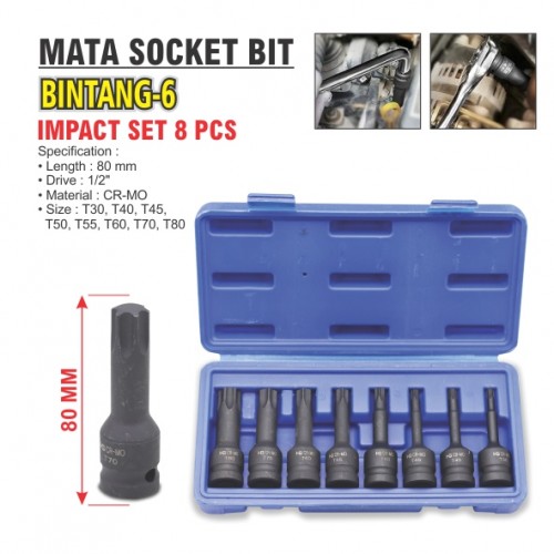 • Material : CR-MO • Size : T30, T40, T45, T50, T55, T60, T70, T80 • Drive 1/2"