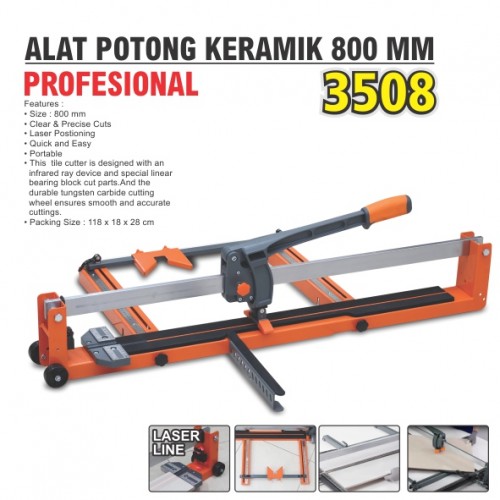 Features : • Size : 800 mm • Clear & Precise Cuts • Laser Postioning • Quick and Easy • Portable • This tile cutter is designed with an infrared ray device and special linear bearing block cut parts.And the durable tungsten carbide cutting wheel ensures smooth and accurate cuttings. • Packing Size : 118 x 18 x 28 cm