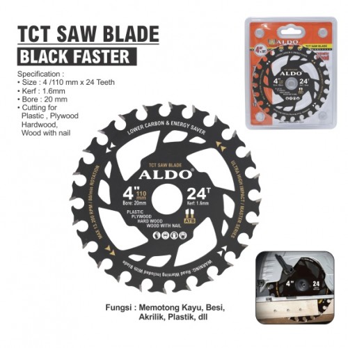 Specification : • Size : 4 /110 mm x 24 Teeth • Kerf : 1.6mm • Bore : 20 mm • Cutting for Plastic , Plywood Hardwood, Wood with nail