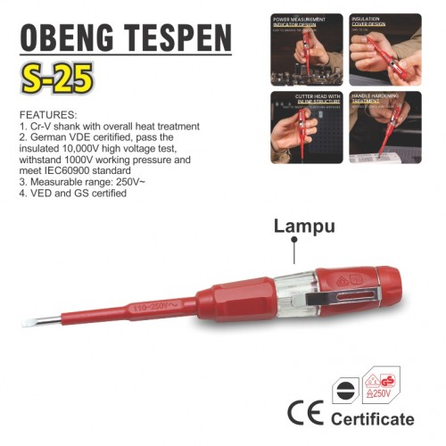 FEATURES: 1. Cr-V shank with overall heat treatment 2. German VDE ceritified, pass the insulated 10,000V high voltage test, withstand 1000V working pressure and meet IEC60900 standard 3. Measurable range: 250V~ 4. VED and GS certified