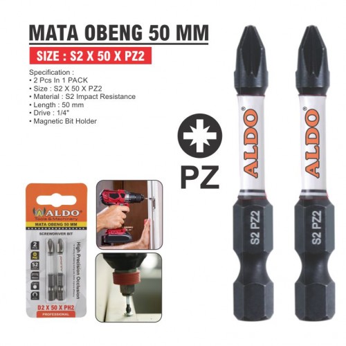 Specification : • 2 Pcs In 1 PACK • Size : S2 X 50 X PZ2 • Material : S2 Impact Resistance • Length : 50 mm • Drive : 1/4"" • Magnetic Bit Holder"